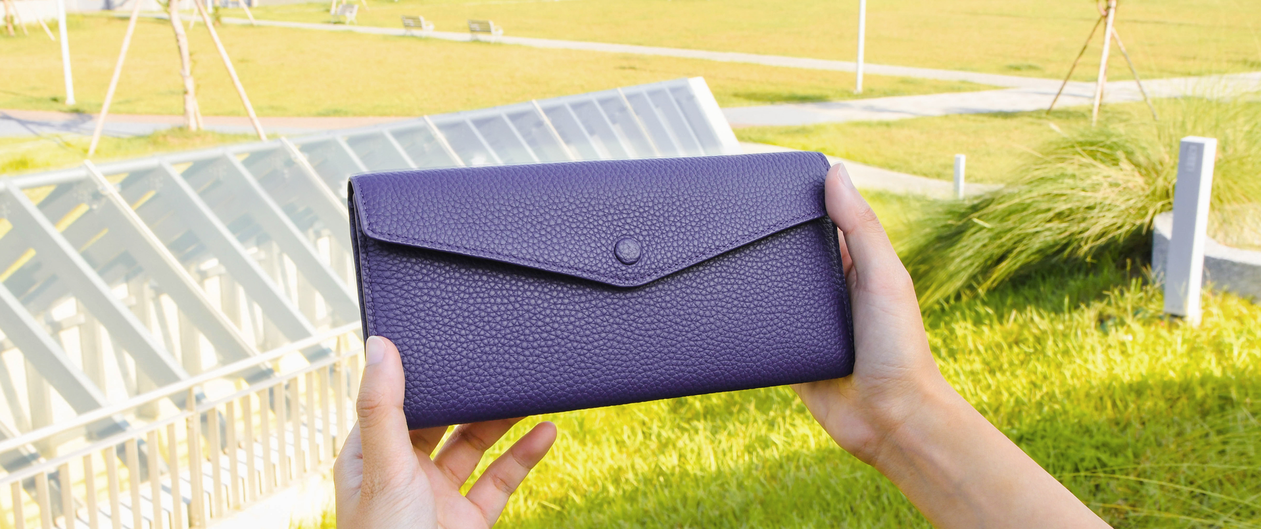 Beautiful envelope-styled wallet for men and women carrying up to 8 cards and abundance of cash, credit cards, phone, and cosmetic goodies.