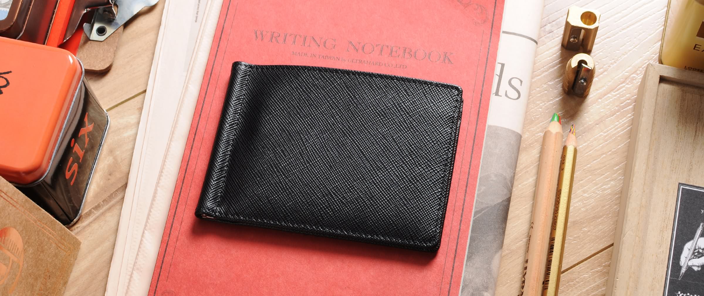 • 1 money clip in the middle to hold bills and notes