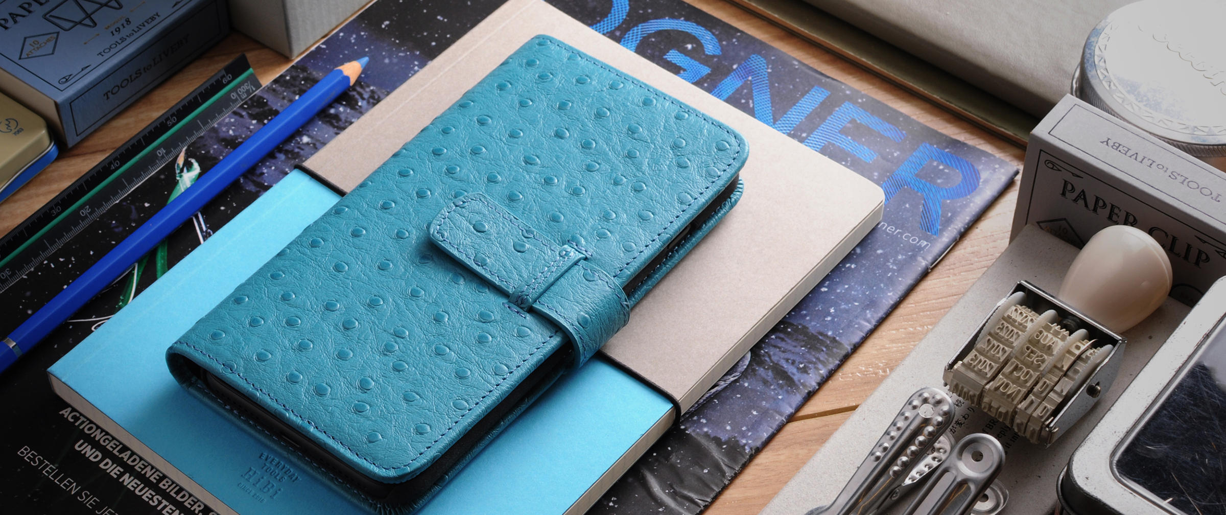 • Exterior Leather / Teal Ostrich Pattern - A173