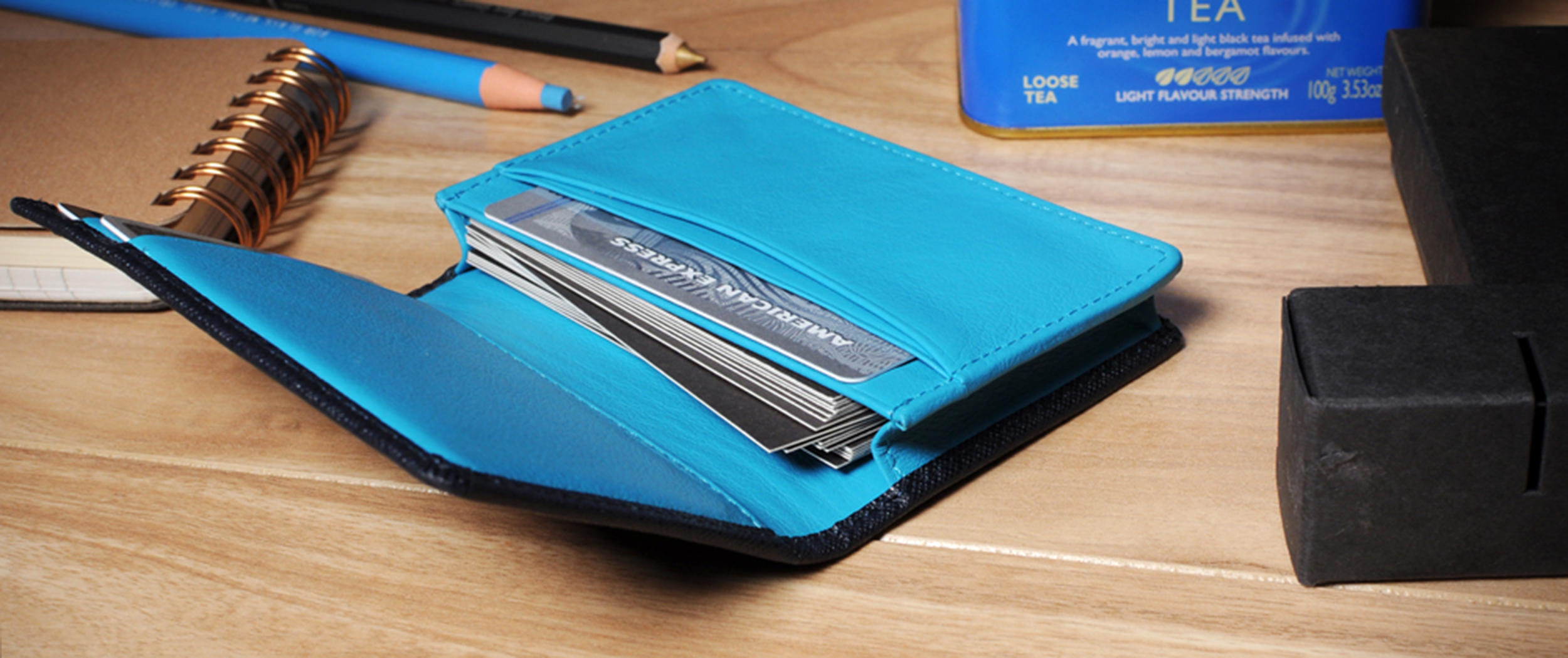 • Handmade dark blue saffiano leather card holder